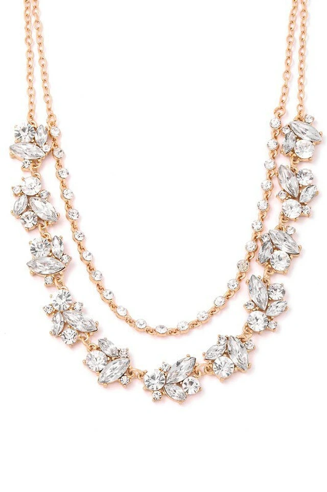 Gold Diamante Cup Chain Necklace & Earrings Set