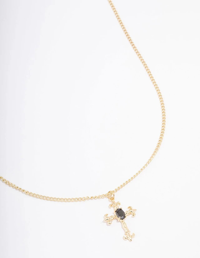 Men's 0.04 CT. T.W. Diamond Mini Cross Inlay Pendant in Stainless Steel and Yellow Ion Plate - 24"