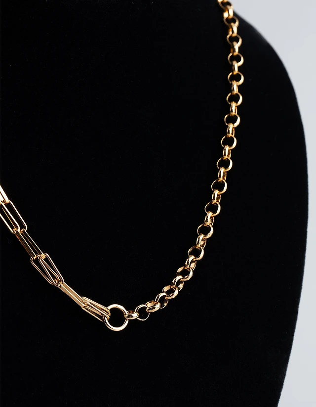 Gold Plated Sterling Silver Half & Half Chain Necklace