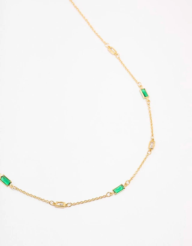 Gold Plated Emerald Baguette Station Necklace