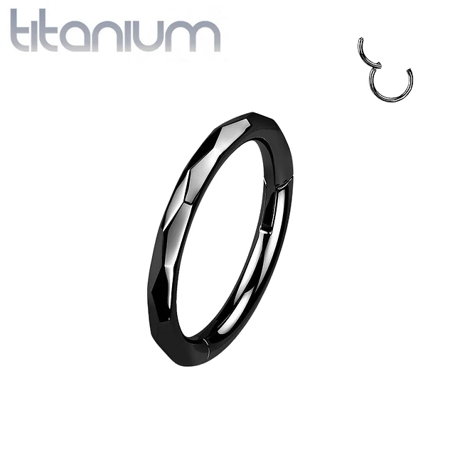 Implant Grade Titanium Black PVD Dainty Ridged Design Hinged Clicker Hoop Ring