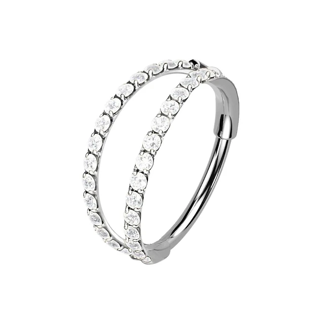 316L Surgical Steel White CZ Pave Double Hoop Nose Ring