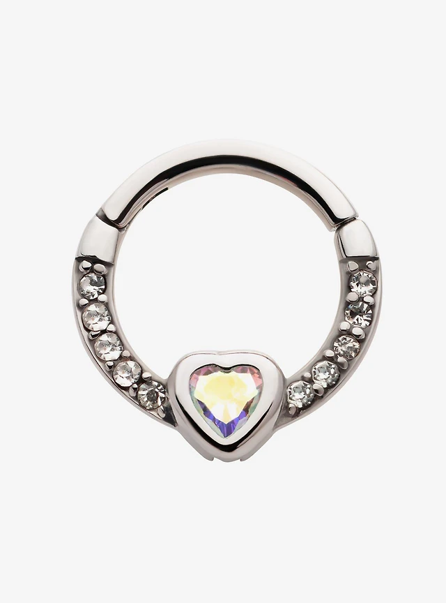 Implant Grade Titanium Internally Threaded With 5 Bezel White Opal Bottom Belly Ring
