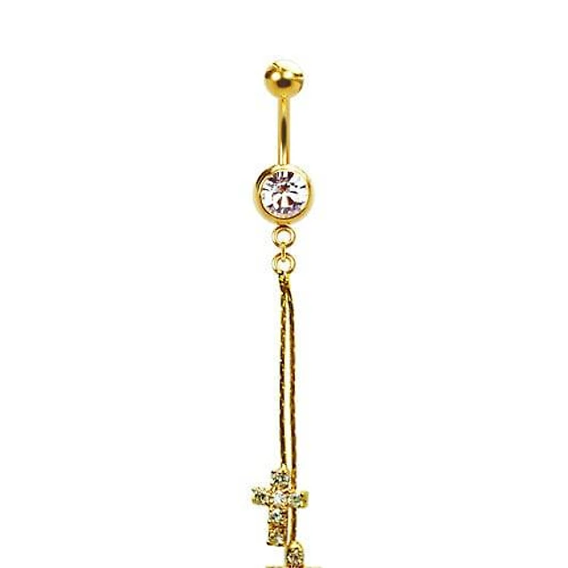 316L Surgical Steel Gold PVD Hanging Chain Triple Star CZ Dangle Belly Ring