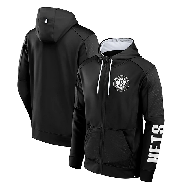 Men's Fanatics Black Brooklyn Nets Baller Defender Performance Full-Zip Hoodie
