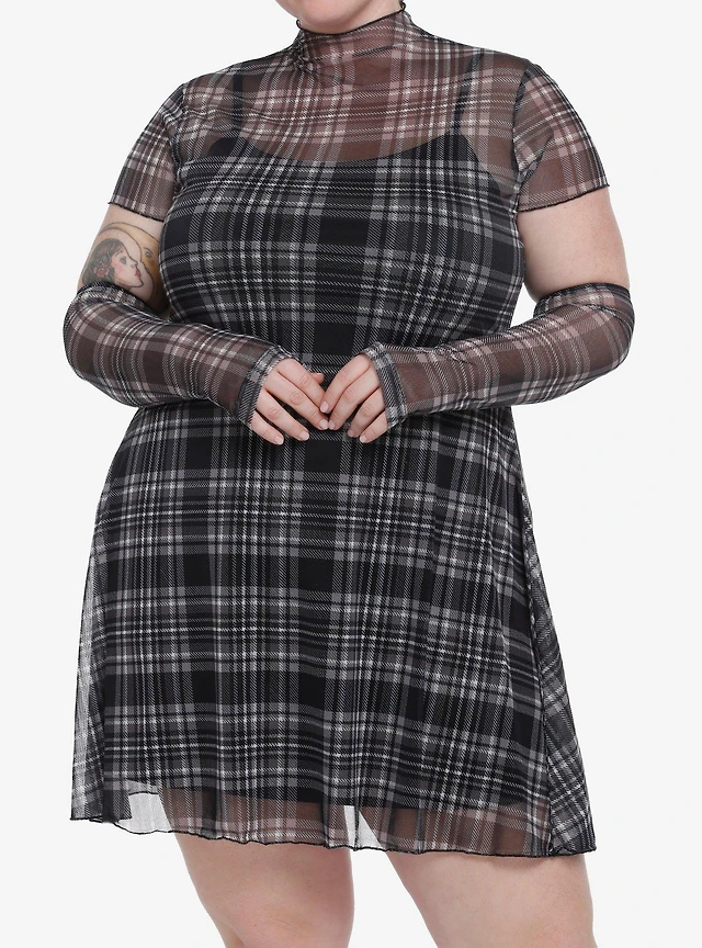 Social Collision Black & Gray Mesh Dress With Arm Warmers Plus