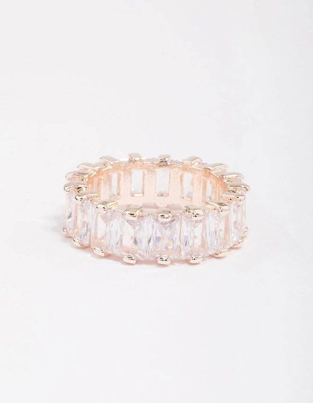 Rose Gold Plated Cubic Zirconia Rectangle Band Ring