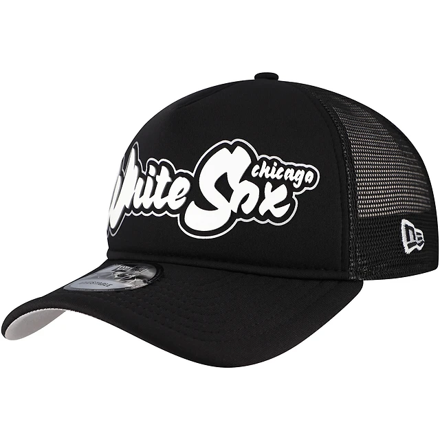 Men's New Era Black Chicago White Sox Retro Bold A-Frame Trucker 9FORTY Adjustable Hat
