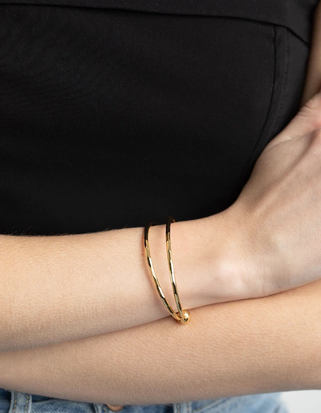 Reaura Open Ball-End Bangle Bracelet in Hollow Repurposed 10K Gold