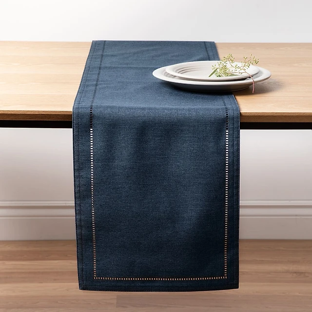 Harman Hemstitch Polyester Runner (Navy)