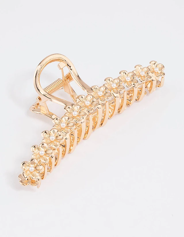 Gold Pearl & Flower Claw Clip