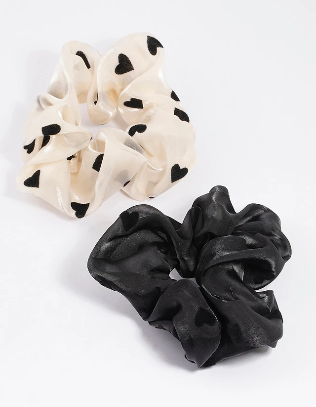 White Fabric Flocked Heart Scrunchie Pack