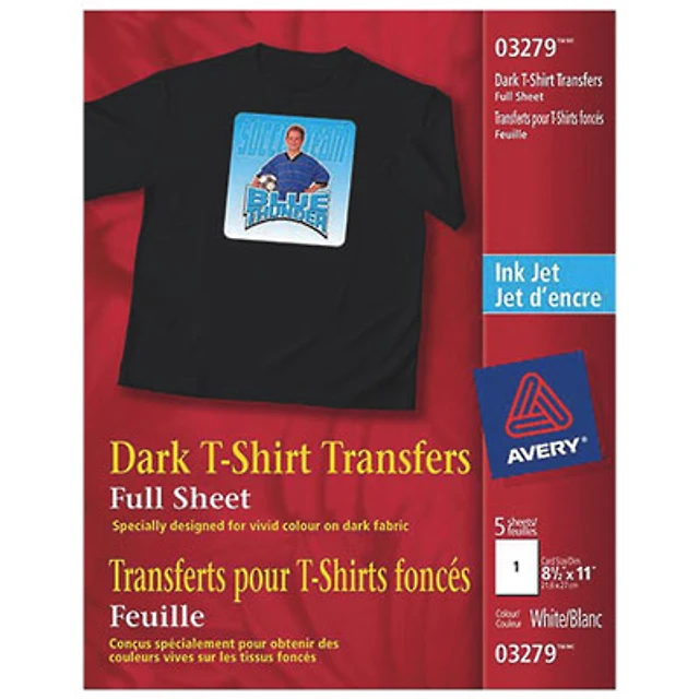 Avery 8.5" x 11" Dark Ink Jet T-Shirt Transfers - 5 Pack - White