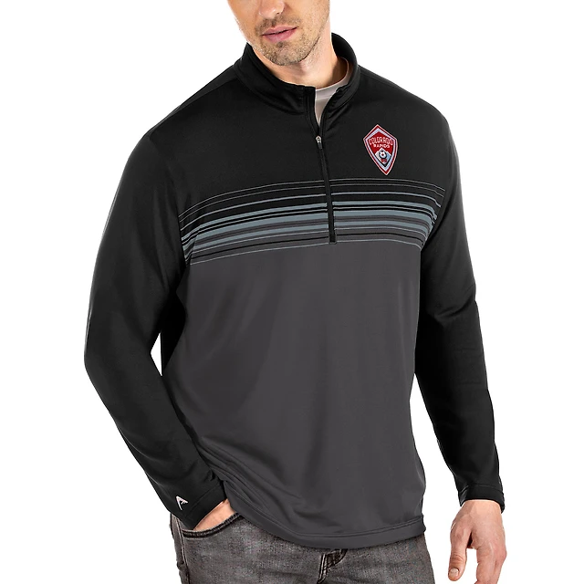 Men's Antigua Heathered Charcoal New York Mets Fortune Half-Zip Sweater