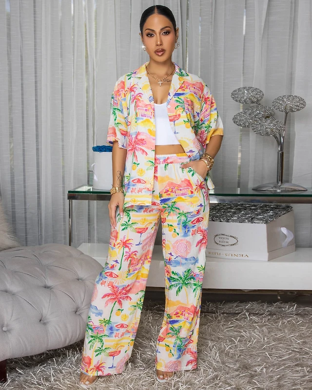 Ellington Ivory Multi-Color Palm Tree Print Pants Set