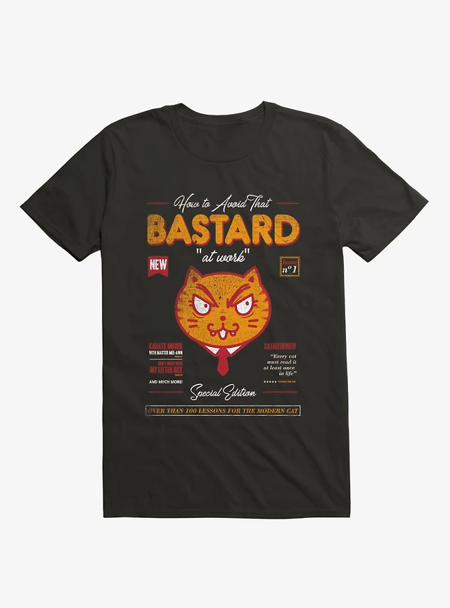 Avoid That Bastard At Work Cat Magazine Black T-Shirt