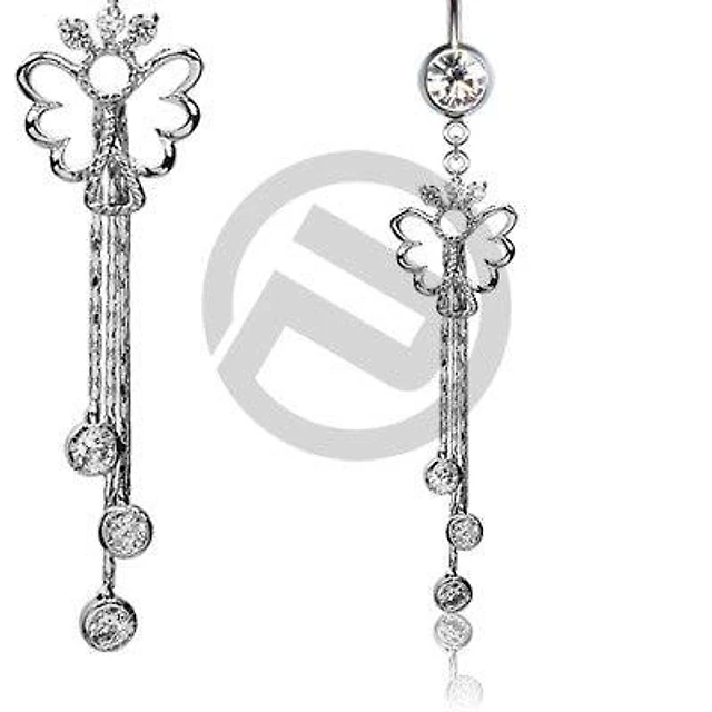 Butterfly Fairy with 3 Layered CZ Drop Belly Button Navel Ring