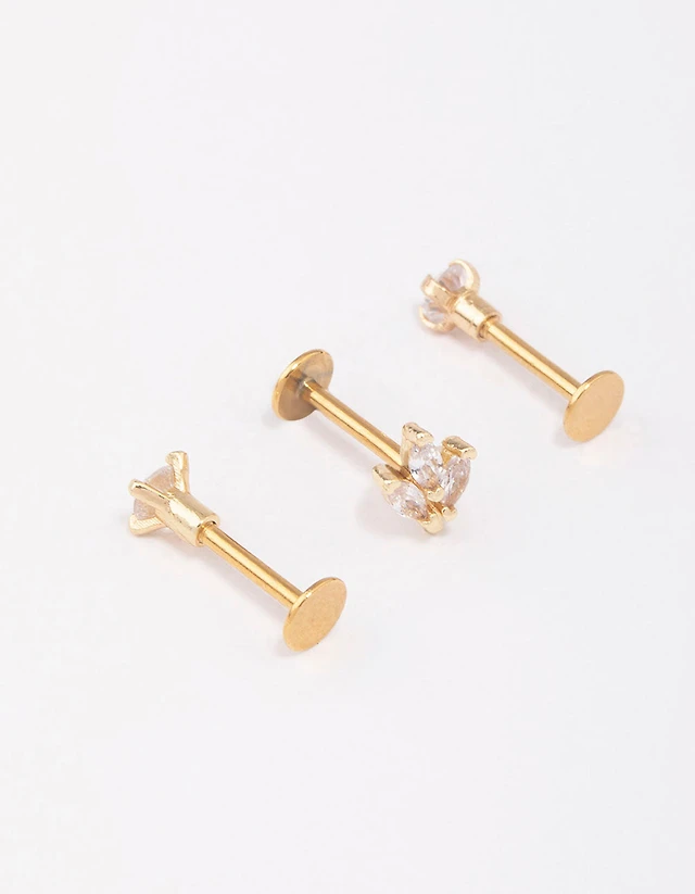 Surgical Steel Cubic Zirconia Butterfly & Round Nose Stud 3-Pack
