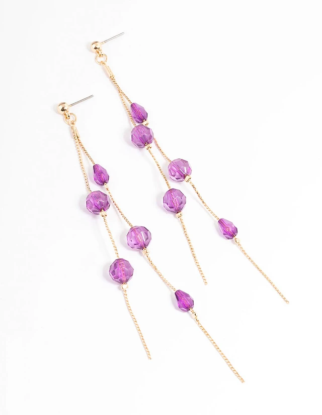 Beaded Lariat Necklace and Drop Earrings Set in 10K Gold