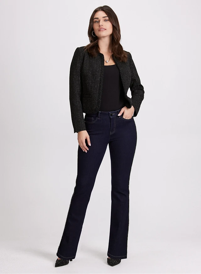 V-Neck Tee With Beaded Trim & Long Button-Front Skirt