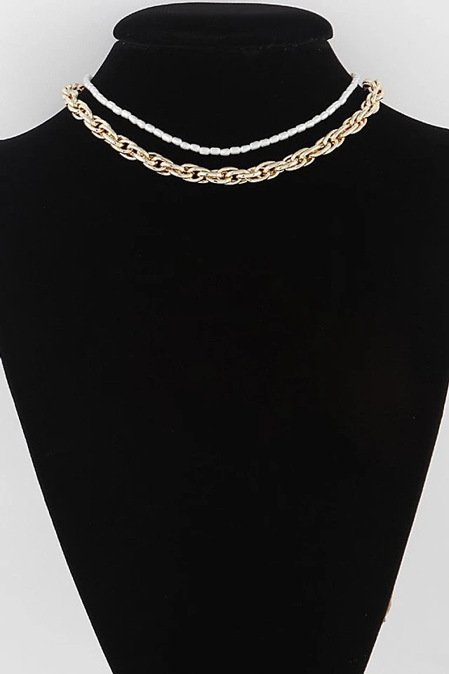 *Sonia Bead Chain Triple Ring Charm Necklace
