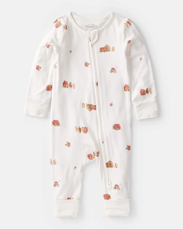 Baby Fall Print PurelySoft Long-Sleeve 2-Way Zip Sleeper- White