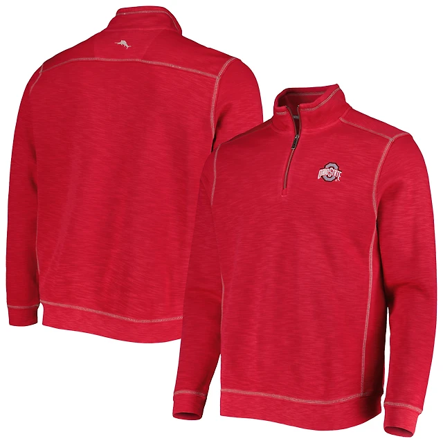 Men's Tommy Bahama Scarlet Ohio State Buckeyes Big & Tall Tobago Bay Tri-Blend Quarter-Zip Sweatshirt