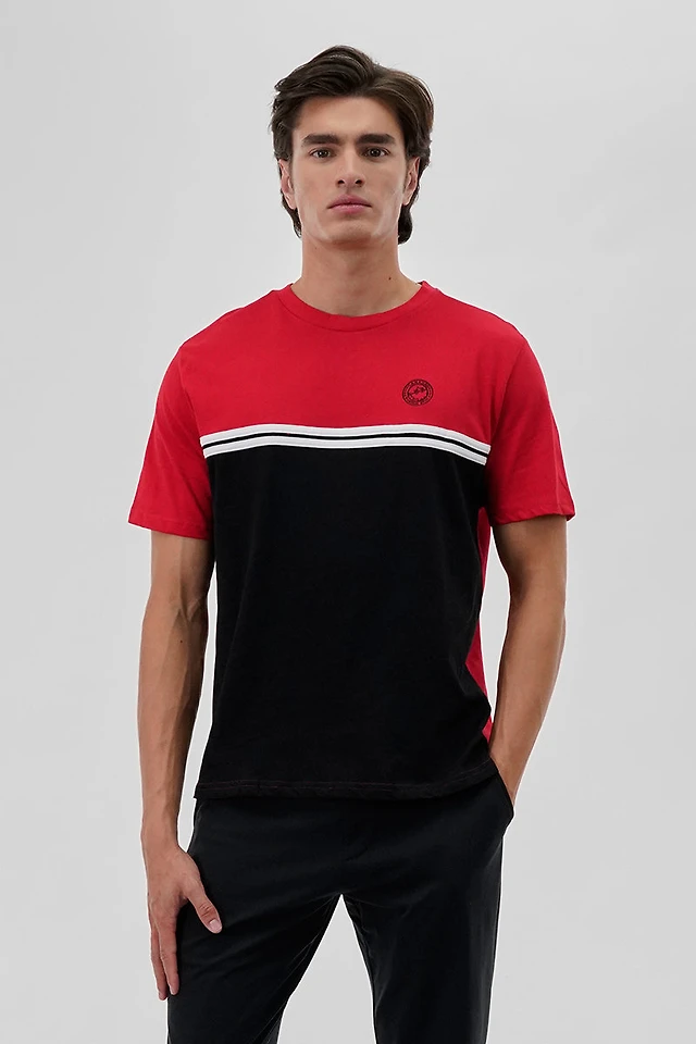 Petite Short Sleeve Knit Gathered T-Shirt in Black /Coral Floral