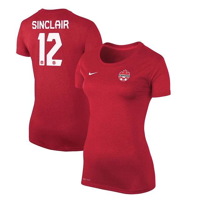 Men's Nike Christine Sinclair Red Canada Soccer Legend Name & Number Performance - T-Shirt