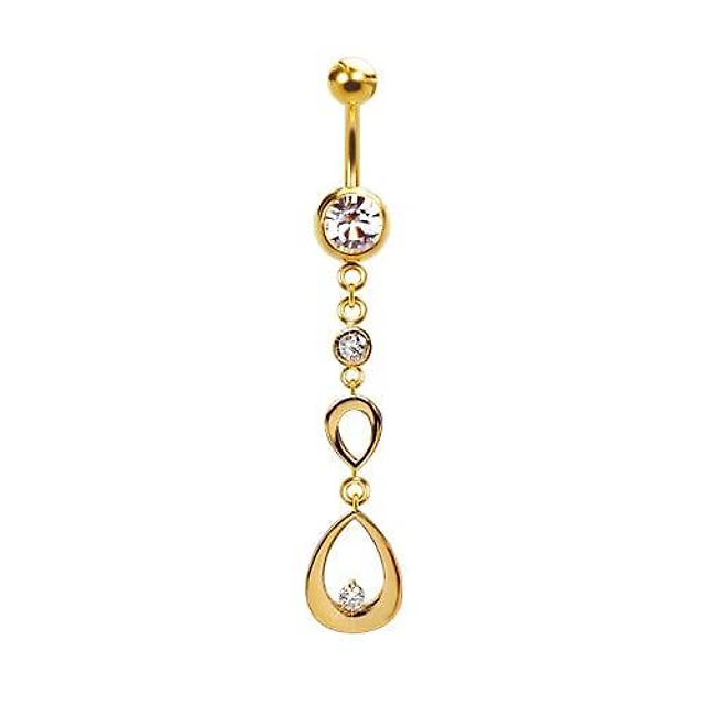 316L Surgical Steel Gold PVD Ascending Double Teardrop CZ Gem Dangle Belly Ring