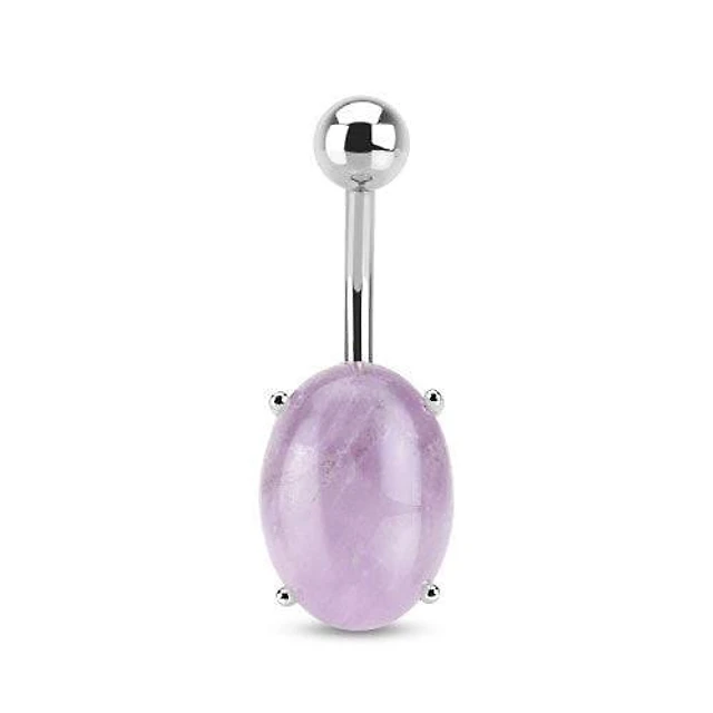 Surgical Steel Belly Button Navel Ring Bar with Amethyst Semi Precious Oval Stone