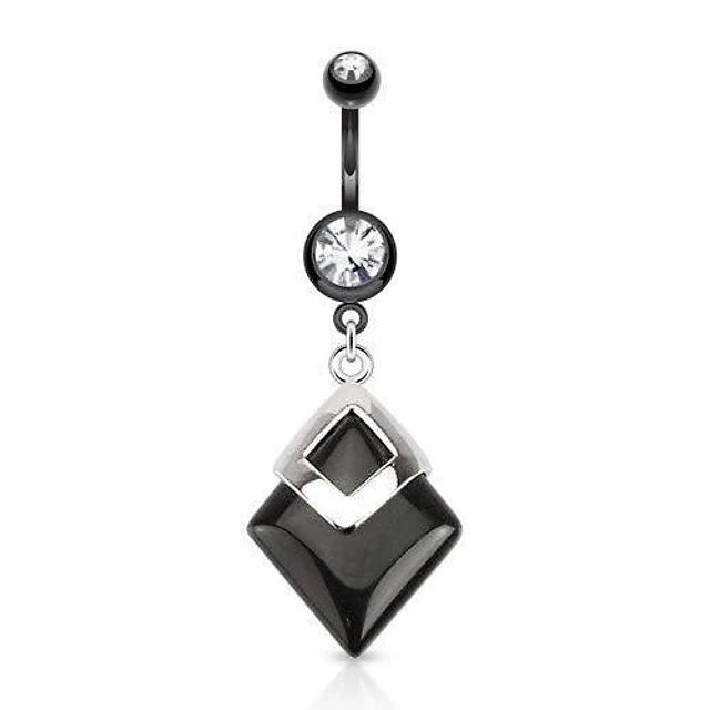 Surgical Steel Belly Button Navel Ring Bar with Black Onyx Agate Semi Precious Oval Stone