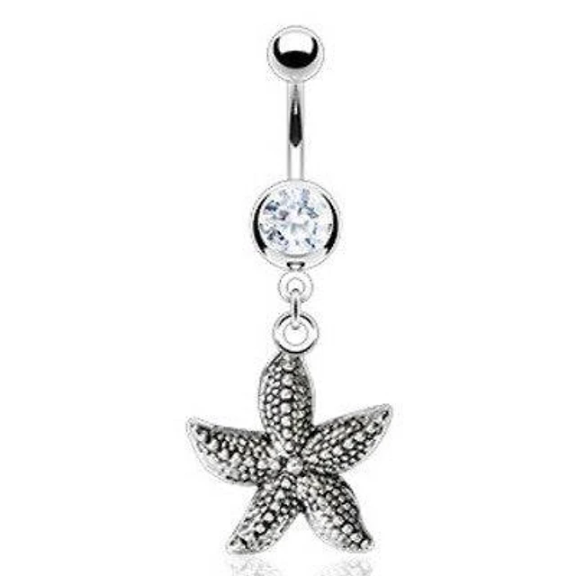 Vintage Antique Starfish CZ Dangle Surgical Steel Belly Button Navel Ring