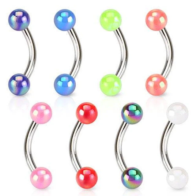 Surgical Steel Curved Barbell with Shiny Metallic Coated Acrylic Balls