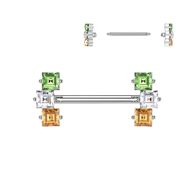 316L Surgical Steel Gold PVD Green White & Orange Straight Barbell Nipple Ring
