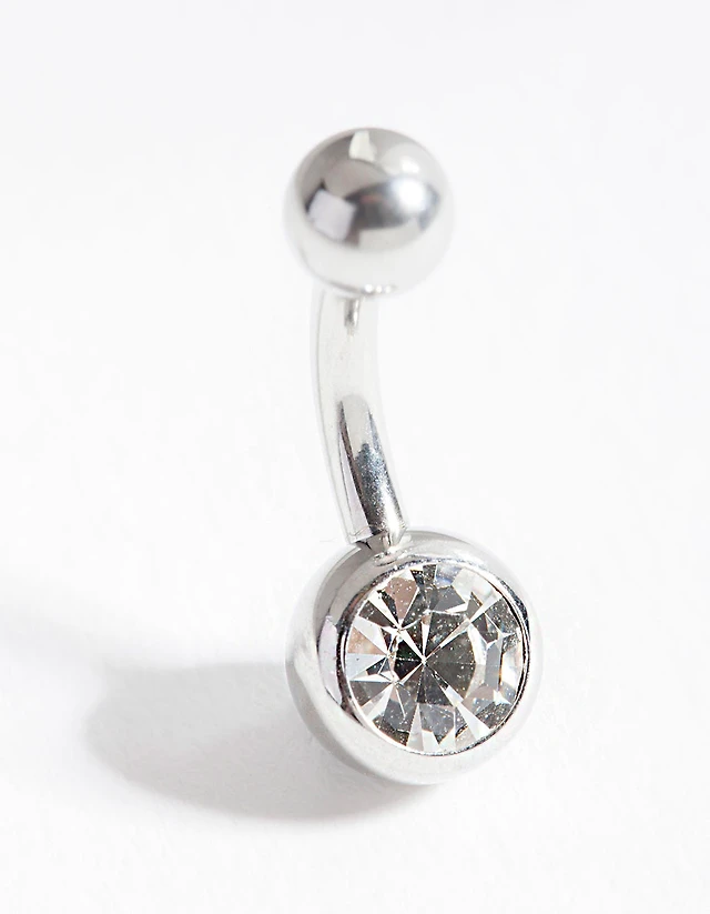 Gold Surgical Steel Round Cubic Zirconia Belly Bar