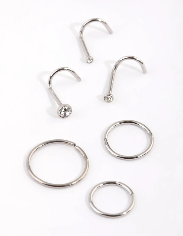Titanium Spiral Mixed Nose Piercings 6-Pack