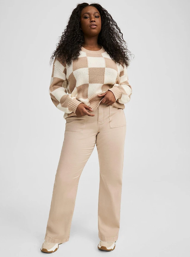 Relaxed Straight Leg Brushed Twill High-Rise Pant