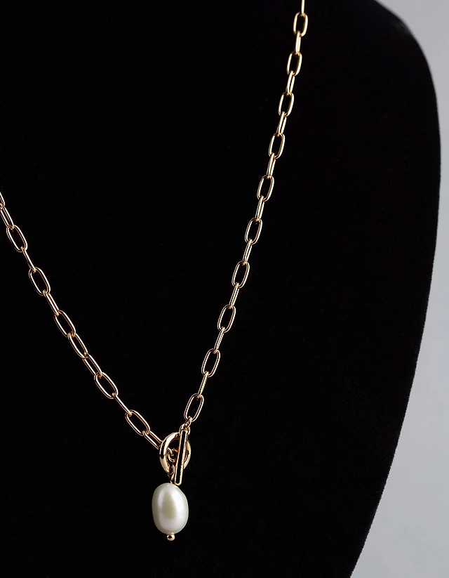 Waterproof Gold Plated Stainless Steel Freshwater Pearl Chain Drop Necklace