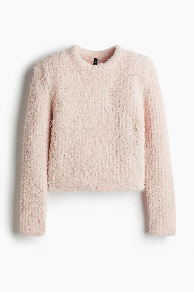 Elbow-Sleeve Ribbed Sweater with Removable Shirt Collar