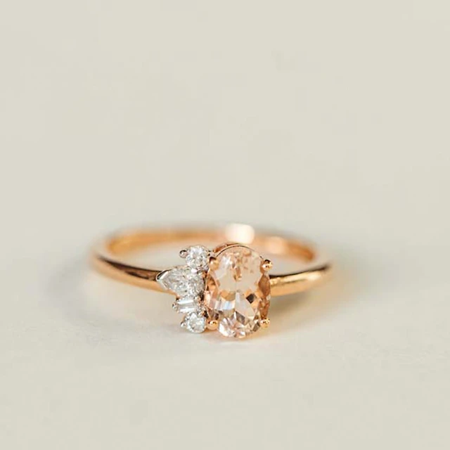 Ring with 8X6MM Pear Shape Morganite and .20 Carat TW of Diamonds in 14KT Rose Gold