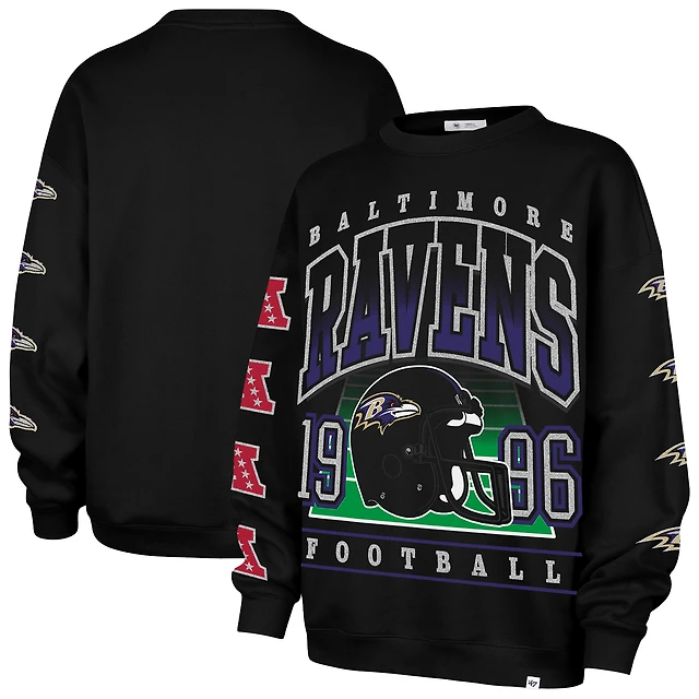 Women's '47 Black Baltimore Ravens Go Big Oversized Pullover Sweatshirt