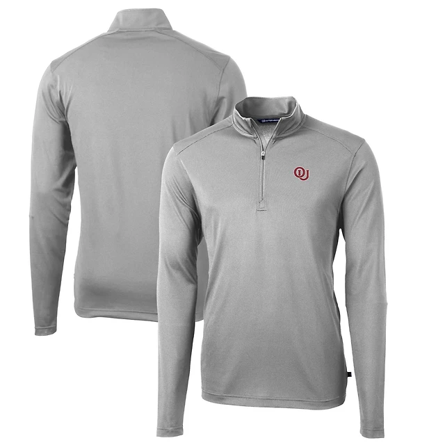 Men's Cutter & Buck Gray Oklahoma Sooners Big Tall Virtue Eco Pique Recycled Quarter-Zip Pullover Top
