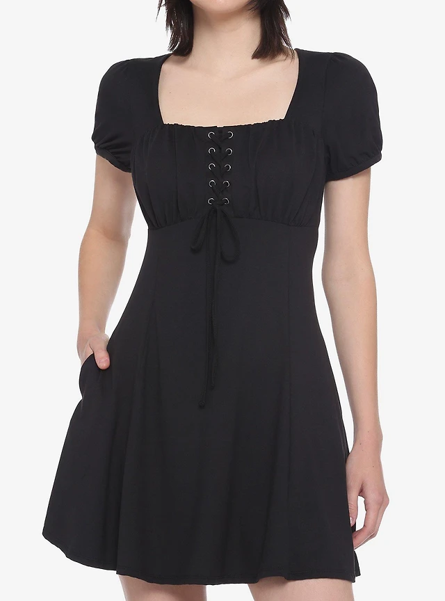Long-Sleeve Empire Dress with Sweetheart Neckline