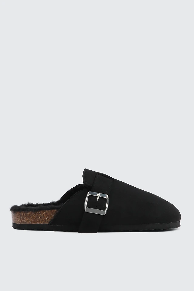 Ardene Cork Platform Slides in Black | Size