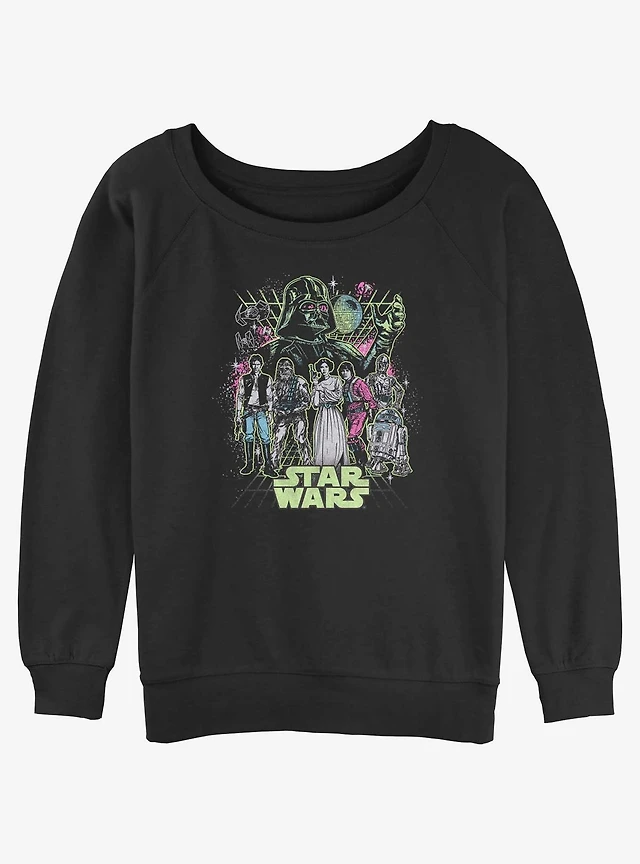 Star Wars Poster Neon Grid Girls Slouchy Sweatshirt
