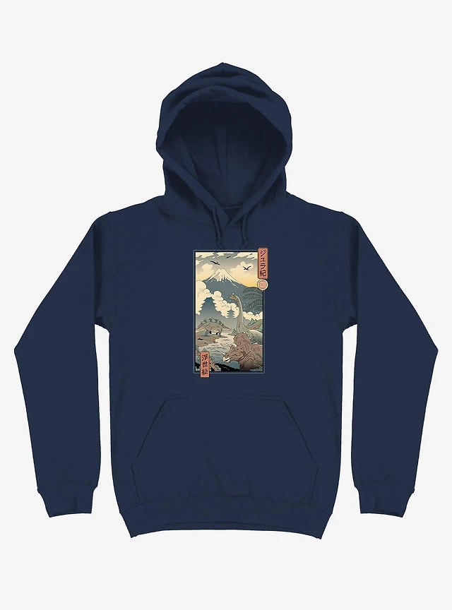 Dinosaurs Jurassic Ukiyo-e Navy Blue Hoodie