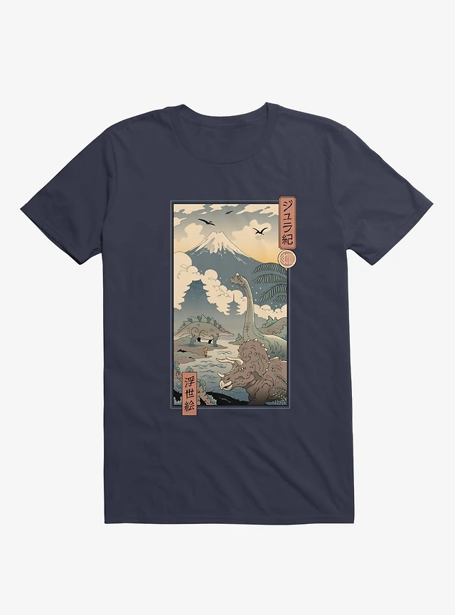 Dinosaurs Jurassic Ukiyo-e Light Blue T-Shirt