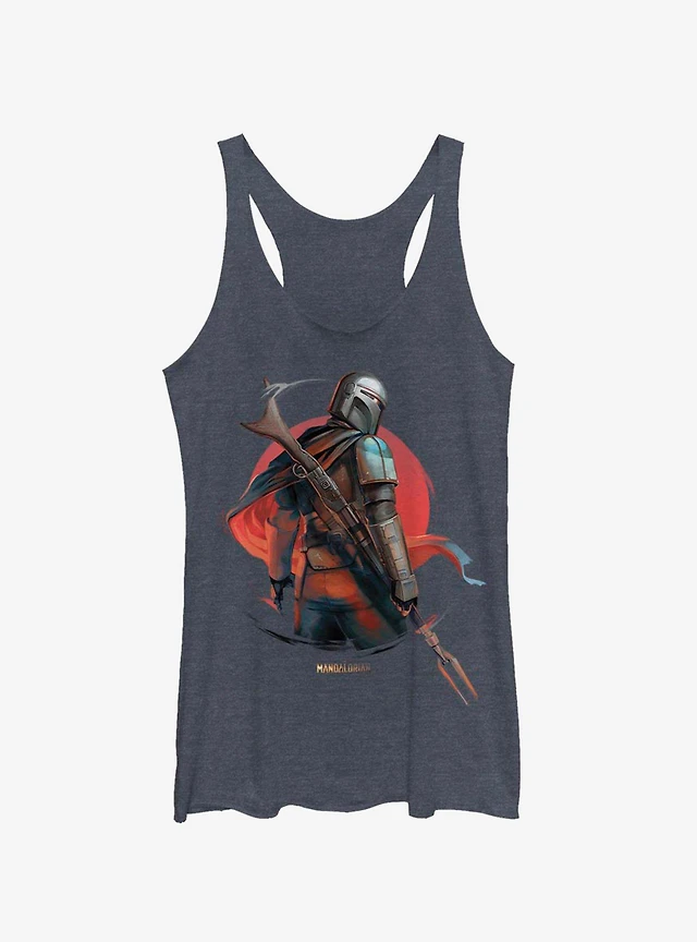 Star Wars The Mandalorian Sunrise Girls Heather Navy Blue Tank Top