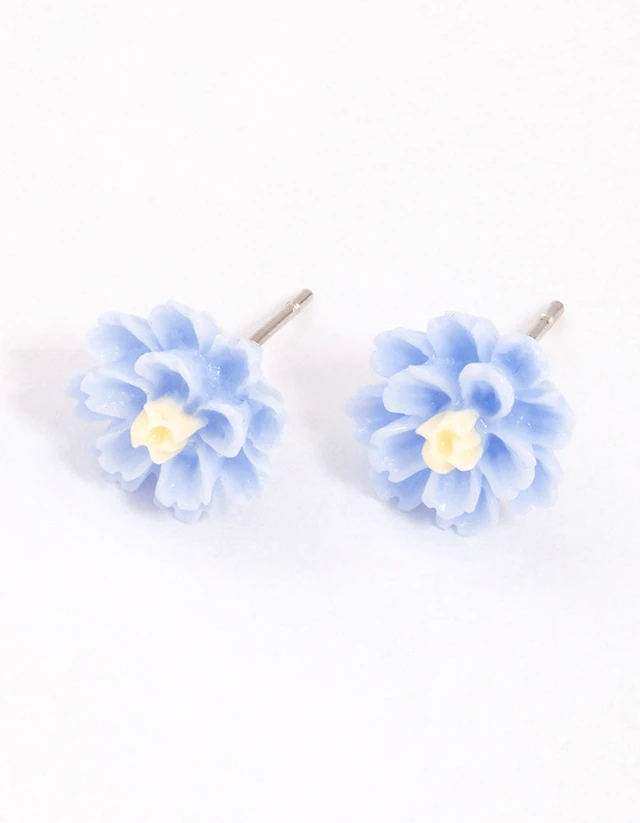 Gunmetal Blue Diamante Leaf Stud Earrings